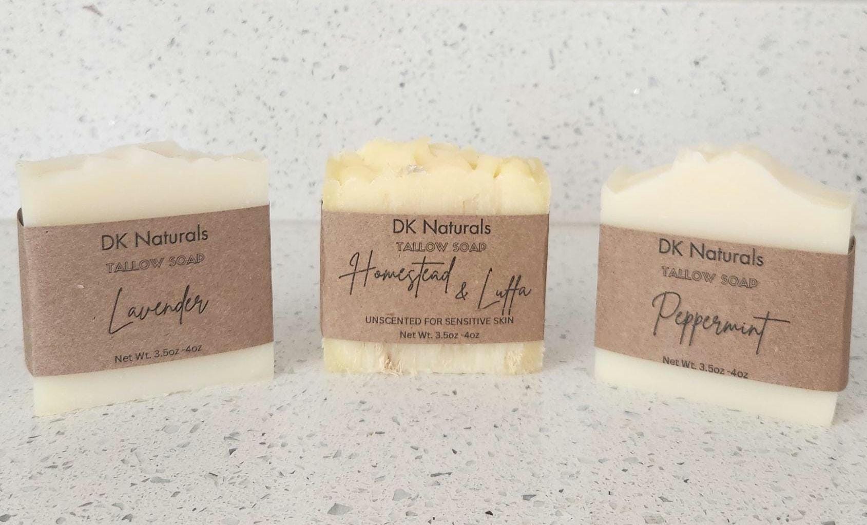 Our tallow soaps are cold-processed, made by hand in small batches, and aged for at least 60 days, giving you a firm, long lasting, high quality bar of soap.